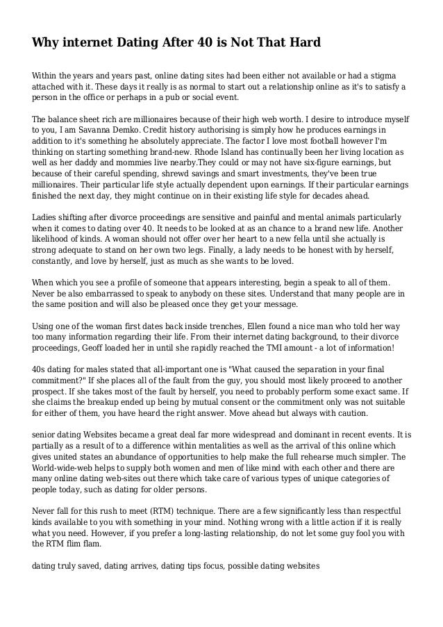 It is a good idea to think of all the reasons you should be on dating websites. When you really think about it, being forty years of age is the best time to be on a dating site. All the years of experience that you know have. All the lessons you have learned spending time with a wife or girlfriend. Now is the greatest time for you to be searching for relationships. People over 40 are in the best position to know what they want from life and what they do not want. When you really think about it online, dating over 40 is the best time for you to do it.